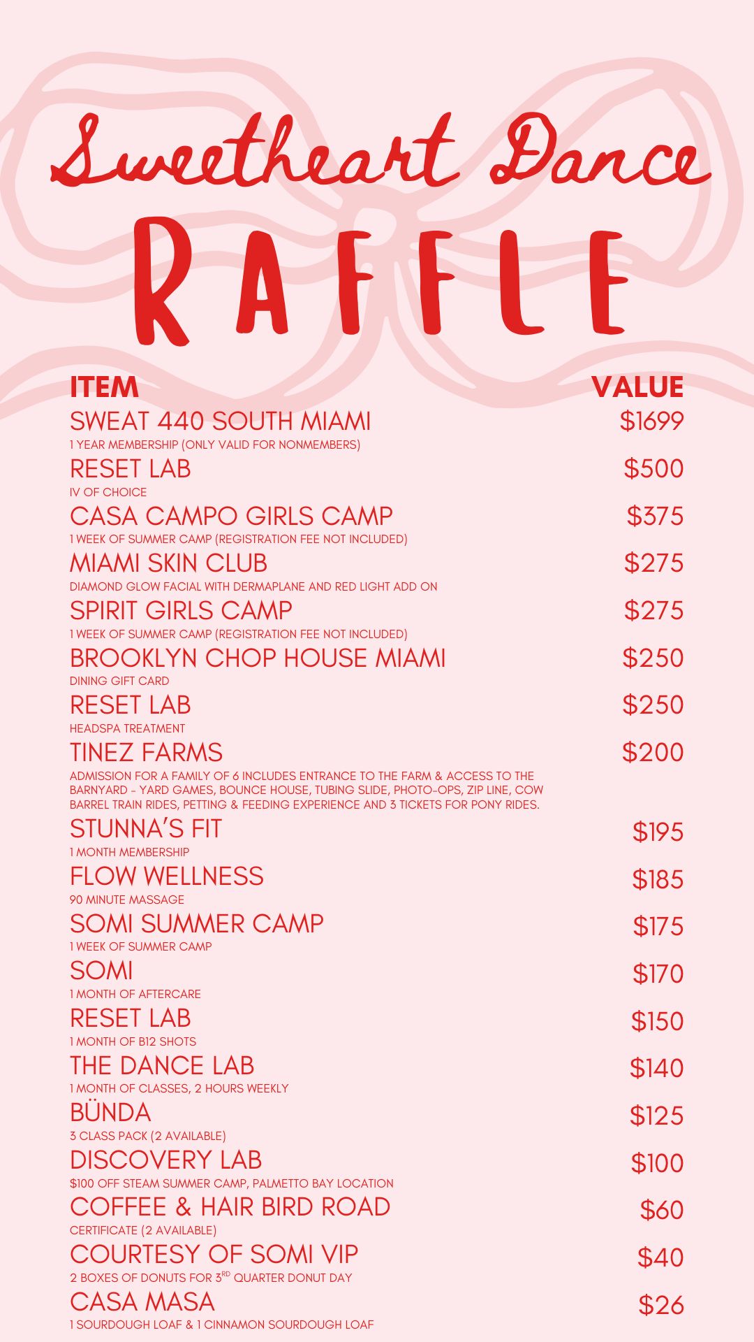**Please note that tickets will be distributed at the dance. All raffle tickets are nonrefundable.